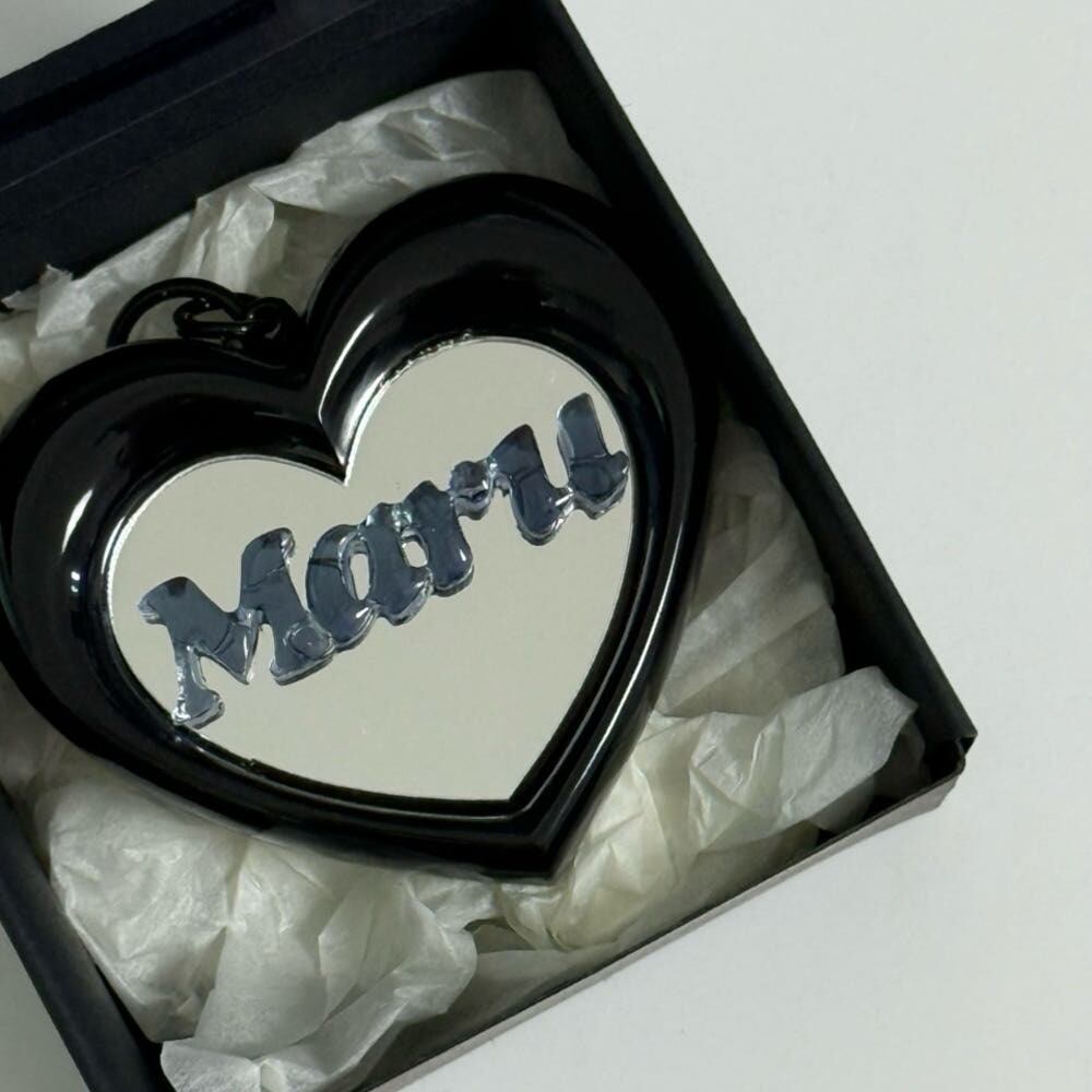 【予約】Heart Mirror name tag Keyling〘 ネーム刺繍 〙