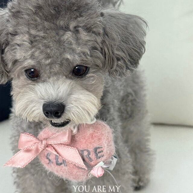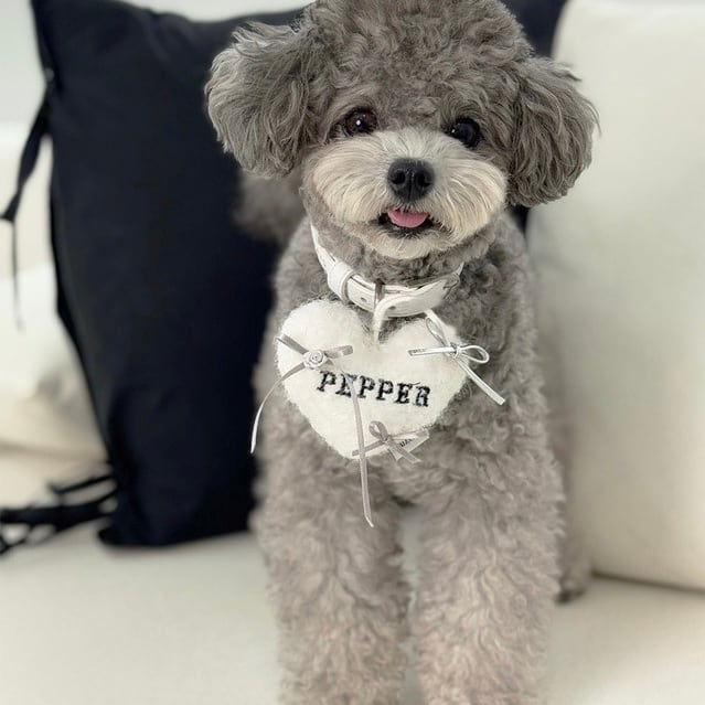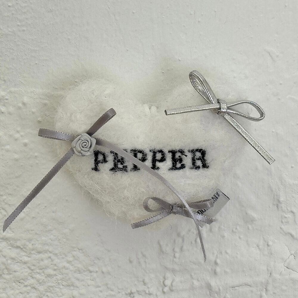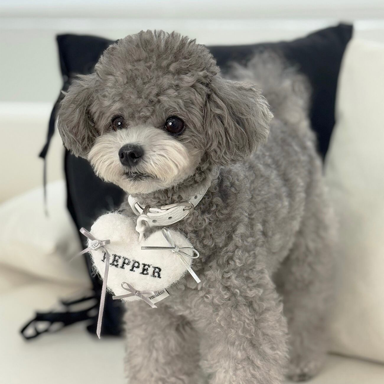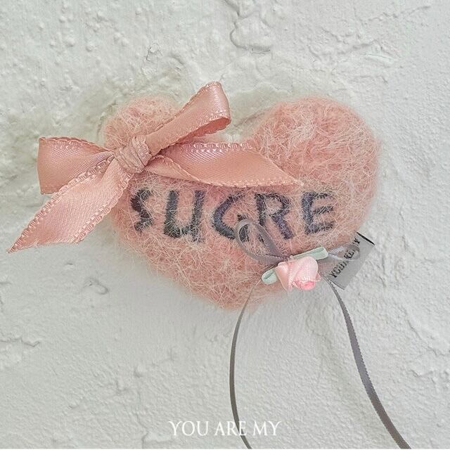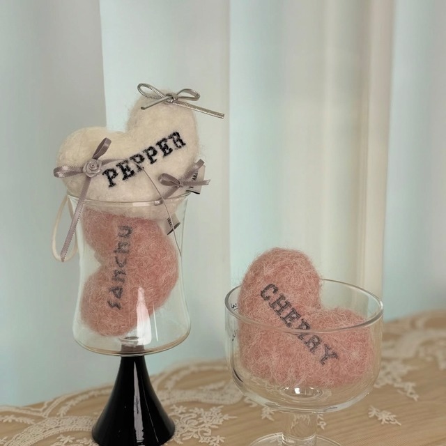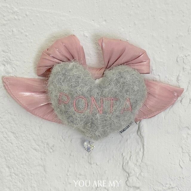 【予約】Heart Name Tag_Fluffy Heart (Ribbon 1ver.) 〘 ネーム刺繍 〙