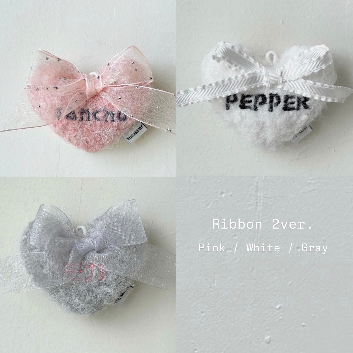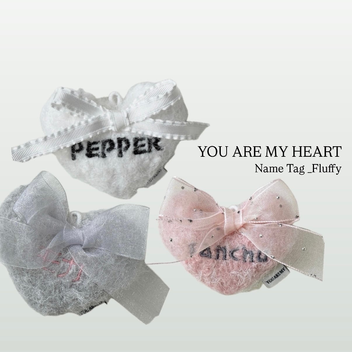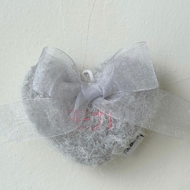 【予約】Heart Name Tag_Fluffy Heart (Ribbon 2ver.) 〘 ネーム刺繍 〙