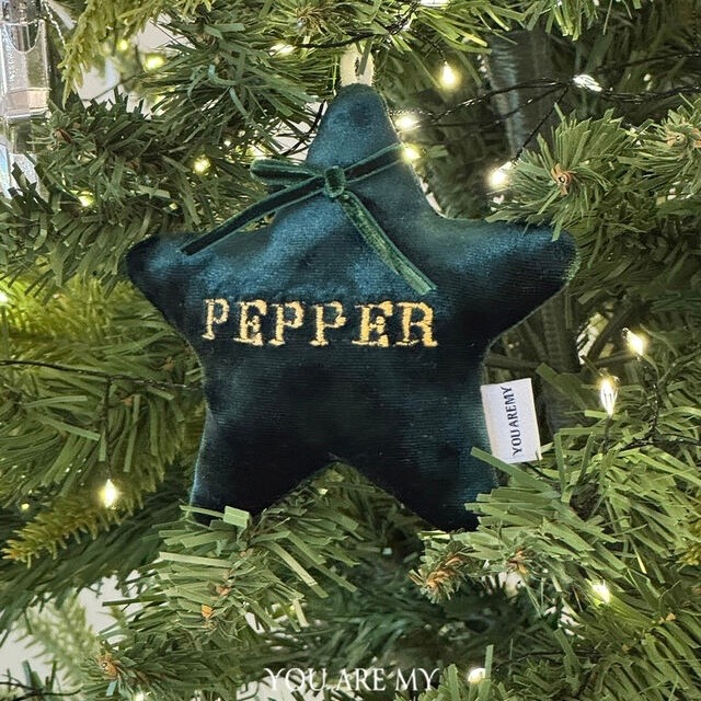 【予約】Little Star Name Tag_Christmas (Ribbon ver.) 〘 ネーム刺繍 〙