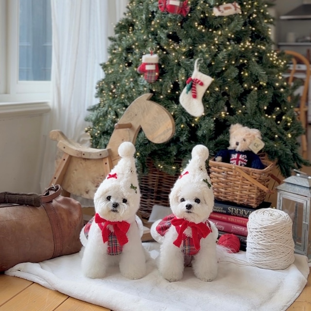 レッドチェックで完璧にクリスマスの雰囲気をプラスし、楽な着用感で頭にツリーを被せ