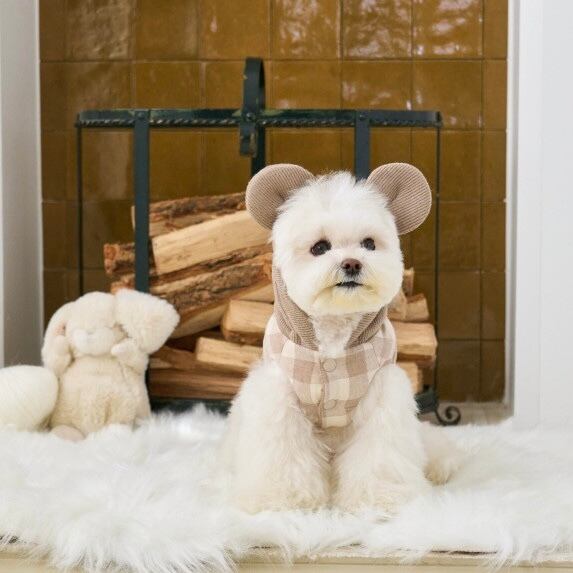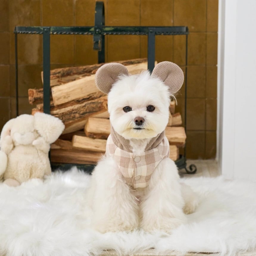 チェックとクマさんお耳の無敵組み合わせで見た目かわいいデザインです!