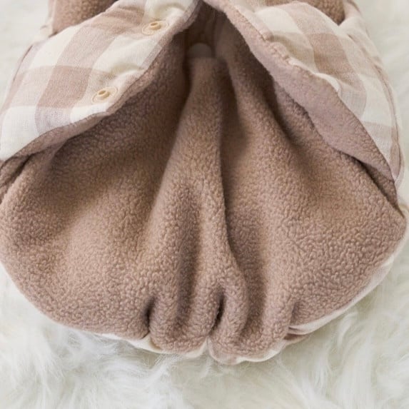表地はチェック柄生地、裏地はフリス生地、中は保温性と復元力に優れた綿(オコテックス認証)で温かさは抜群です。