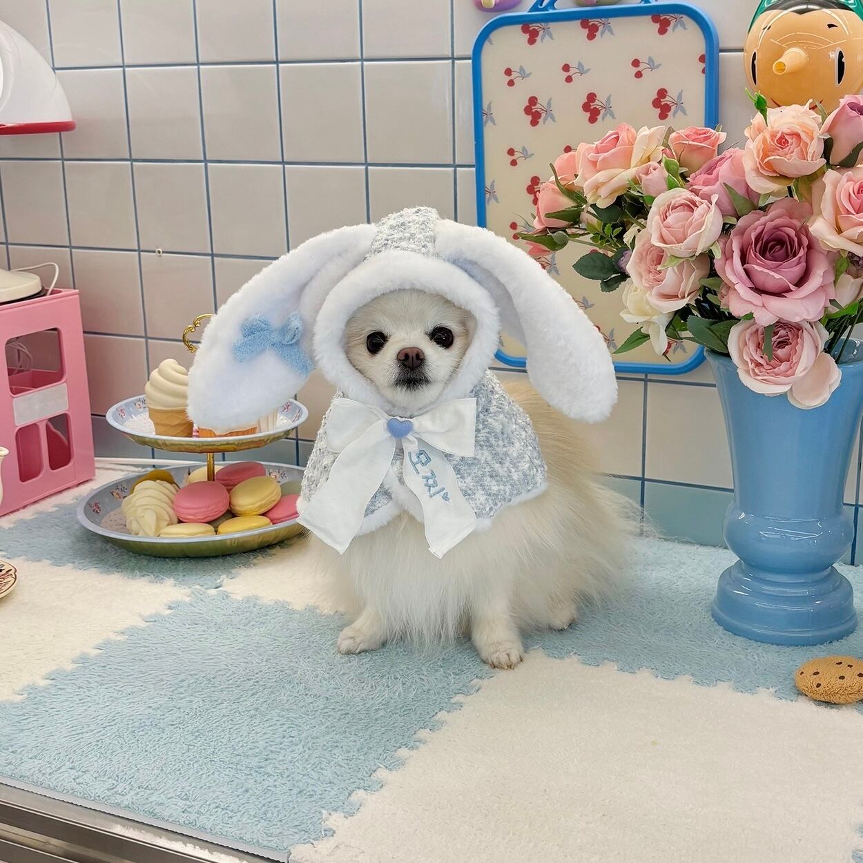 うさぎの妖精を連想させる愛らしいフードケープです。