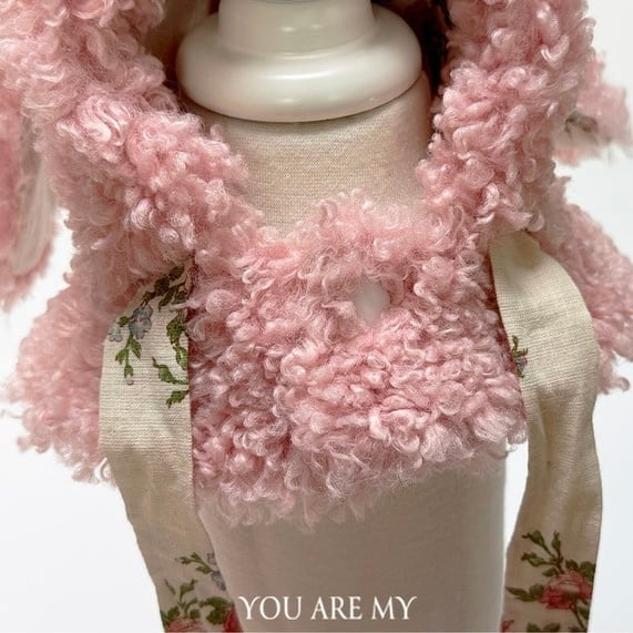 ふんわりとした毛とヴィンテージなフラワーのプリント裏地でラブリーながらも温かく前のリボンポイントでもう一度可愛い魅力アップ!