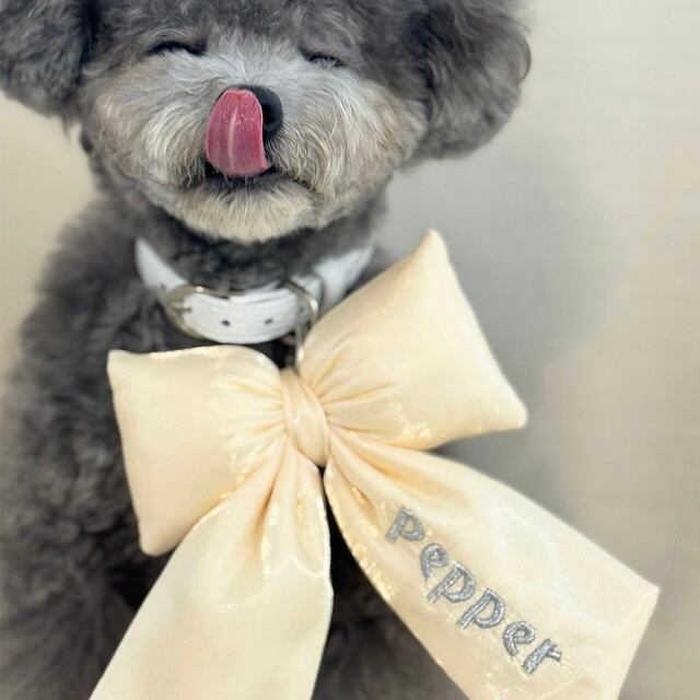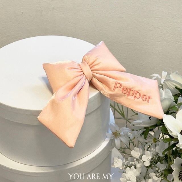【予約】 PRESENT_SATIN BIG BOW Nametag(classic ver.) 〘 ネーム刺繍 〙
