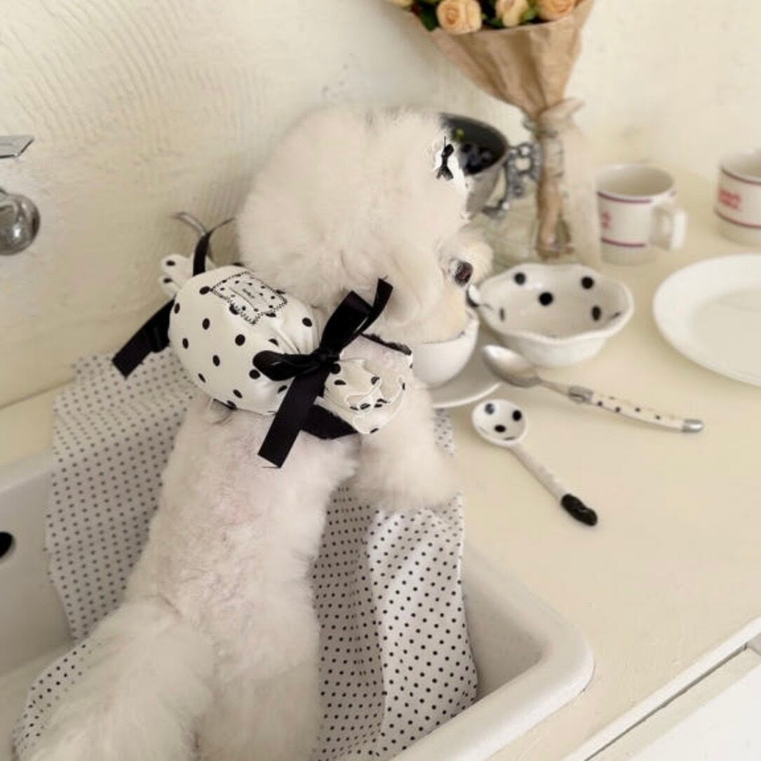 キュートなドットデザインが目を引くこのバックは、オシャレさと実用性を兼ね備えています。