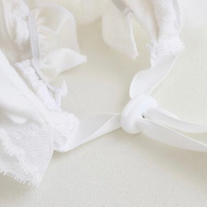 ストッパー(絞り)でサイズ調節後、リボン紐の長さが長い場合リボンを結んであげると活動しやすいです。