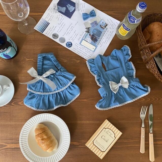 ︎︎︎︎☑︎ デニムコレクションはクラシックなオーバーロールワンピースと2重のフリルがレイヤードされたかわいいクロップ全部で2つのスタイルで用意しました。
