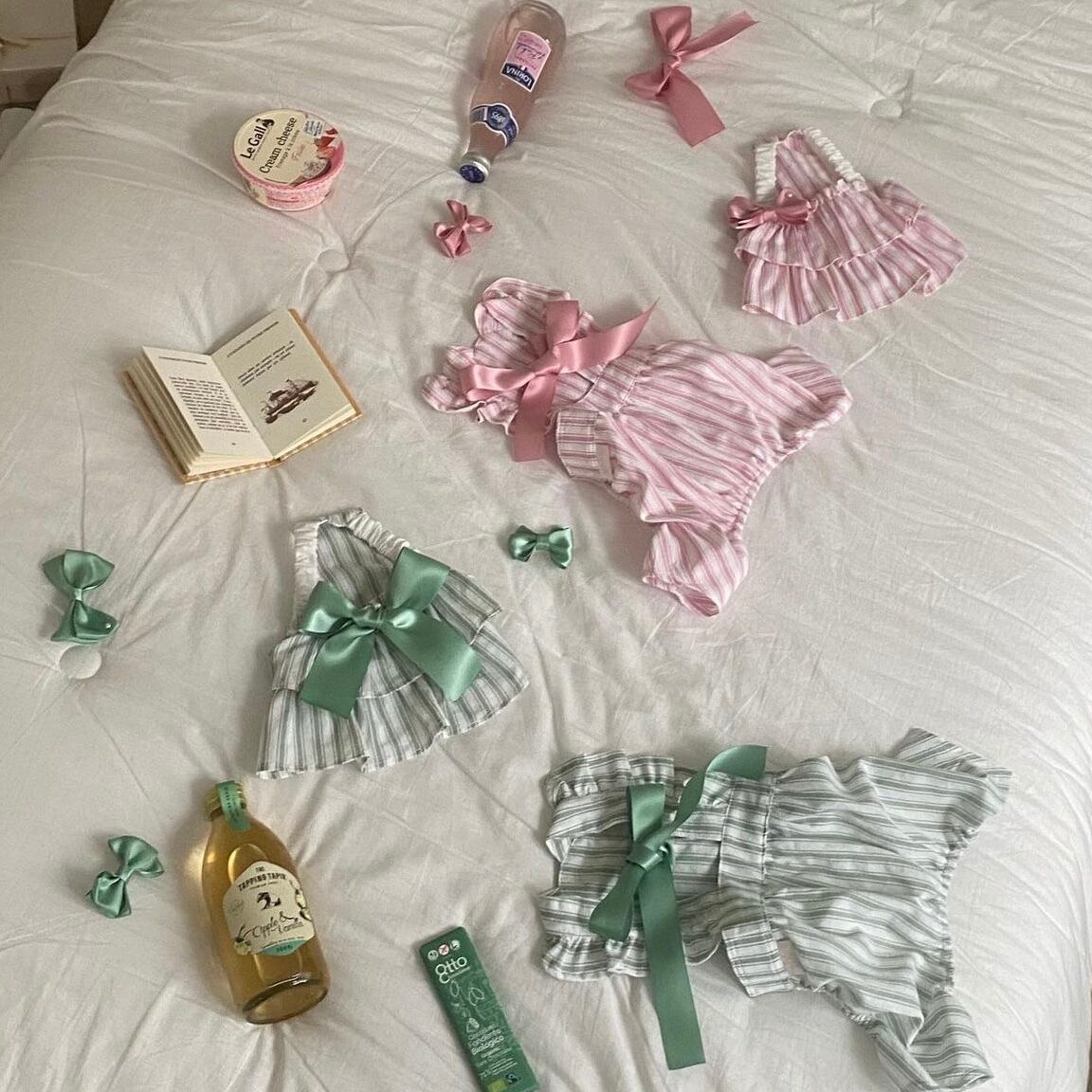 ロンパーは背中にリボンの帯がついていて、大きなリボンを作ることができます。