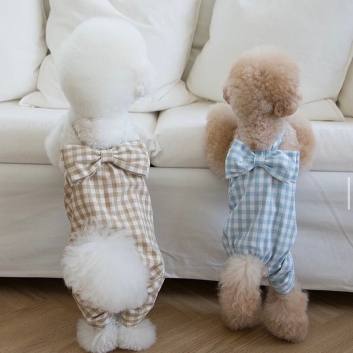 ︎︎︎︎☑︎活動性は維持しながら、可愛い子犬たちが活発に走って遊ぶ時も可愛いように背中にビッグリボンをつけました。