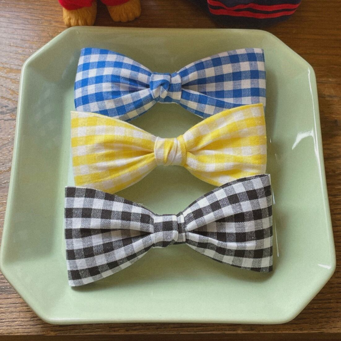 ▷ check ribbon hairpin【 Red / Green / Yellow / Orange / Black / Blue / Pink 】