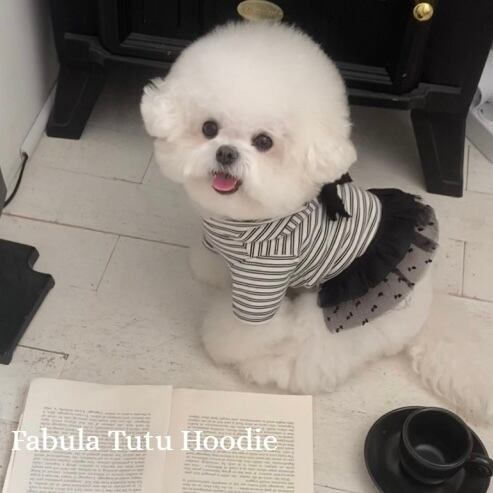 シックなブラックストライプフーディーにチュチュをマッチしてより可愛らしい印象に♥♥♥♥
