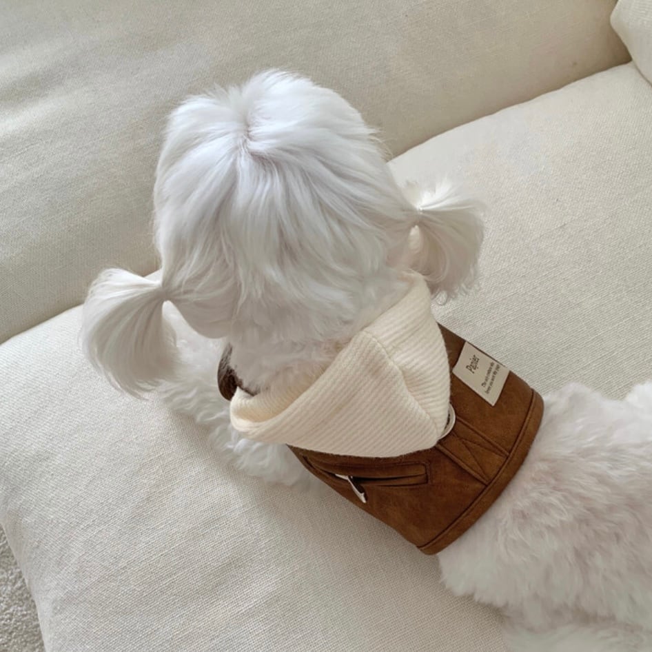 ファスナーディテールとフードには暖かい感じのニット生地を使ってくれ、高級感がたくさんのハーネスです!