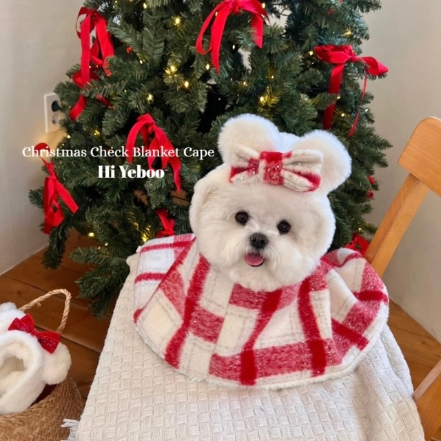 クリスマスムードいっぱいのウール混紡生地に頭にリボンのディテールがとてもかわいいです。